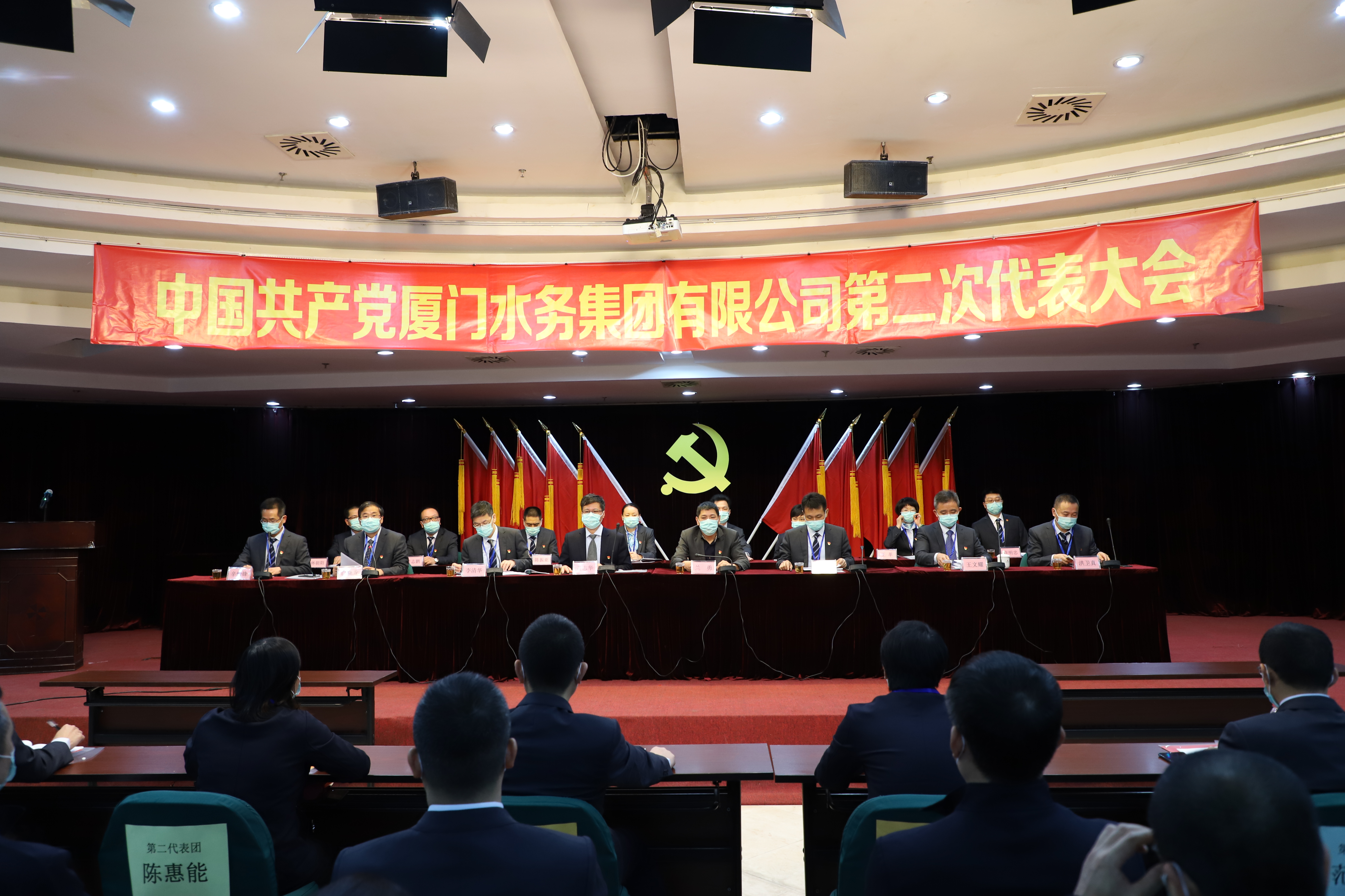 2020年4月9日,中国共产党厦门水务集团有限公司第二次代表大会隆重召开,集团党委书记、董事长李清华主持会议。厦门市政集团党委副书记、总经理黄志华,党委委员、工会主席兰勇到会指导。集团109名党员代表、22名列席代表参加了大会。会前,代表们分5个代表团,酝酿讨论大会主席团成员名单、秘书长建议名单、代表资格审查委员会建议名单、大会议程(草案)等文件,并经由大会预备会议表决通过名单及议程。
