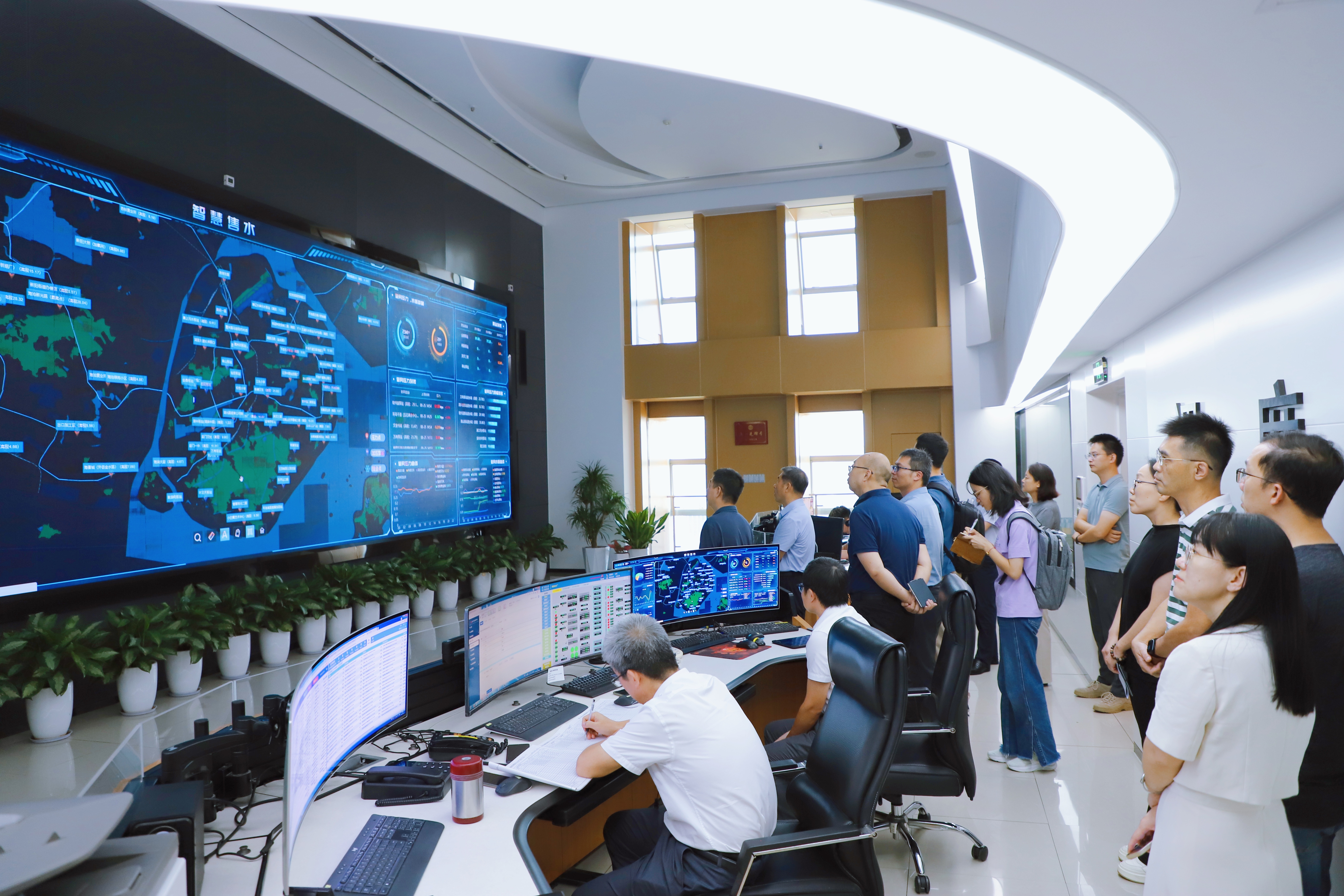 访问团队首先参观了调度中心,通过数字大屏实时查看了供水生产调度与管网运行等系统的运作情况,直观了解了市政水务在数字化建设方面取得的成果。